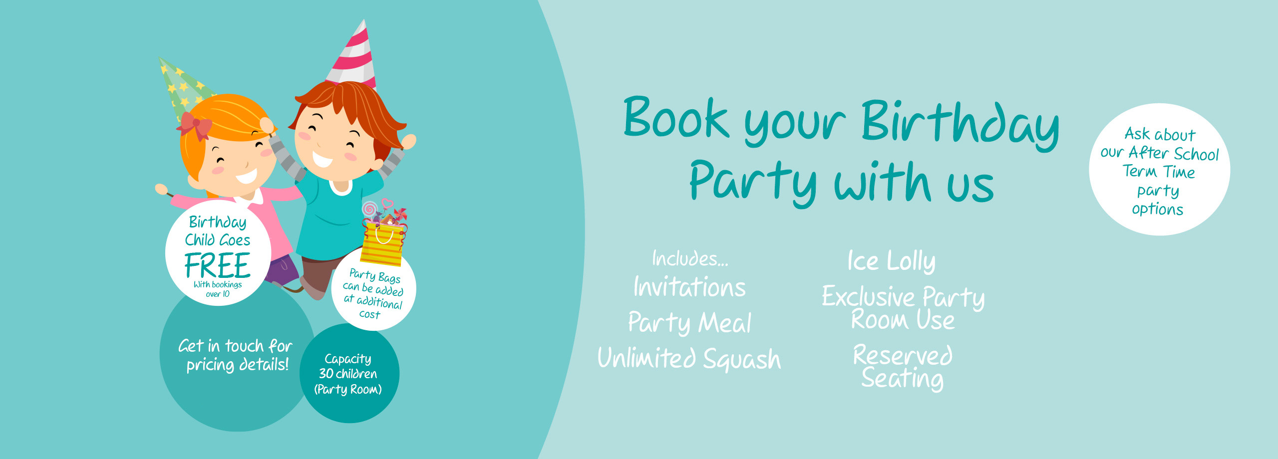 All party children will enjoy soft play, the private party room, unlimited squash, party food, and ice lollies. Invitations are also included—download them online or collect in person.